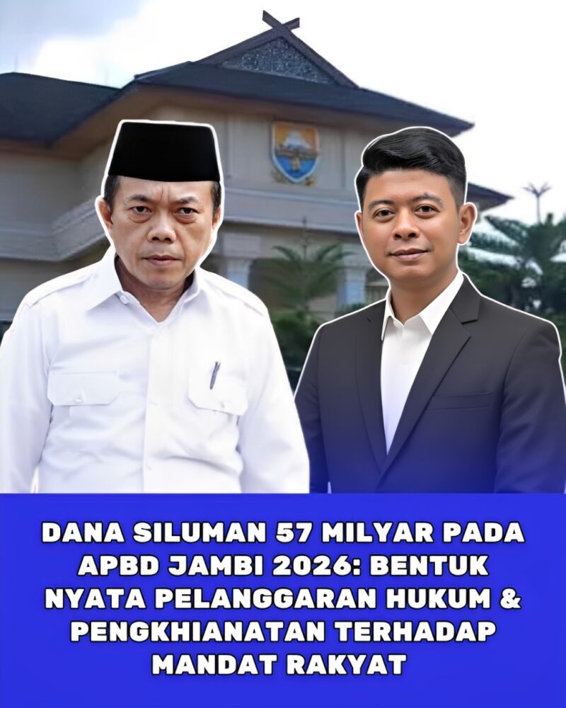 JAMBI-Penambahan anggaran Sebesar 57 Milyar secara sepihak dalam APBD Provinsi Jambi Tahun Anggaran 2026 tanpa melalui pembahasan dan persetujuan DPRD patut diduga sebagai dana siluman. Anggaran yang muncul di luar mekanisme resmi, tidak transparan, dan tidak diketahui publik bukan hanya persoalan teknis administrasi, melainkan pelanggaran hukum serius yang mencederai prinsip demokrasi dan tata kelola pemerintahan yang bersih.